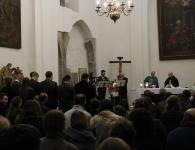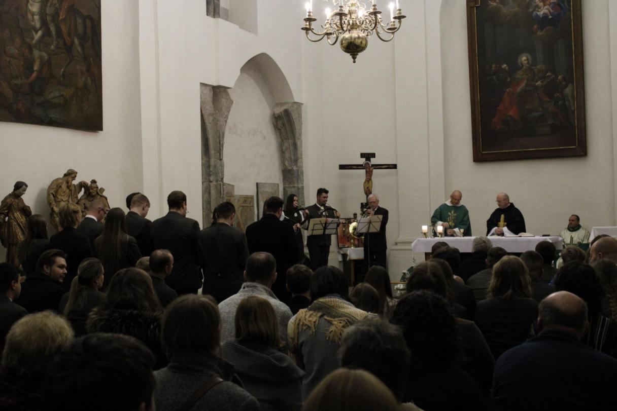 Potom prebehlo pasovanie lovca muflónej zveri. Následne sa Hubertský sprievod presunul od auly TUZVO do kaplnky Zvolenského zámku, kde sa konala svätá omša za hudobného sprievodu našich trubačov.